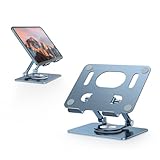 TOPESELタブレットスタンド 360度回転 iPad用スタンド折畳み式 高さ角度調整可能 Tabletスタンド 縦置き 横置きタブレットホルダー 収納便利 タブレットPCスタンド 画面共有便利 姿勢改善 滑り止め 4.7~12.9インチまでipad&タブレット&電子書籍リーダーなど機種兼用 アルミ材質(青灰色)