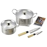 【セット内容】片手鍋:直径約16cm/深さ約9cm両手鍋:直径約20cm/深さ約10.1cm三徳包丁:刃渡り:約16.5cmあじ切包丁:刃渡り:約10.5cm
